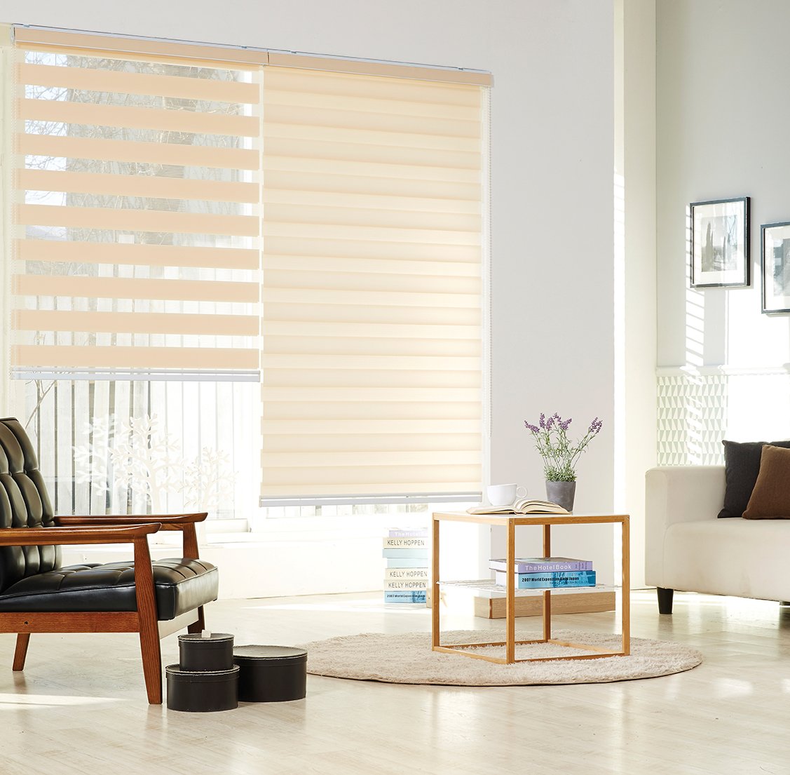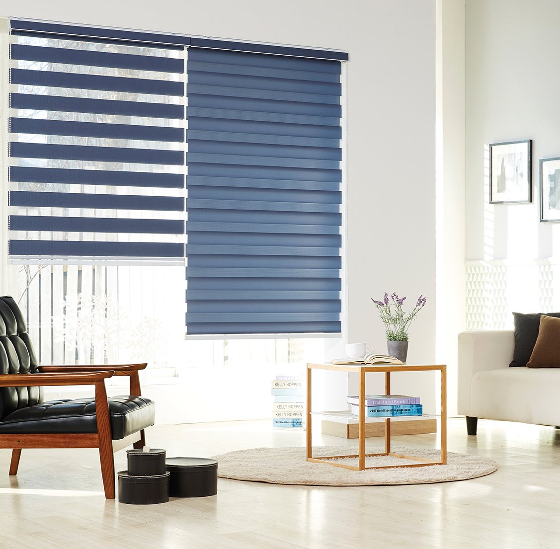 • Open, half-open, and close control for privacy and outside view control